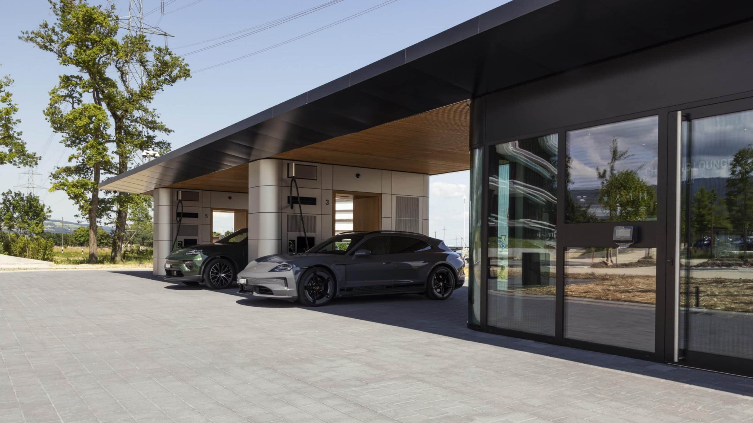 Les propriétaires d’un modèle électrique Porsche peuvent s’arrêter à n’importe quelle heure du jour ou de la nuit pour charger leur véhicule sur l’une des six bornes de recharge rapide d’une puissance de charge maximale de 400 kW.